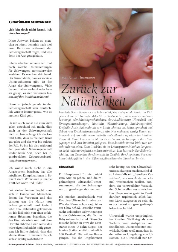 Gesund, glücklich, natürlich & schmerzfrei geht anders, als die moderne Medizinindustrie uns das weismachen möchte. Dieses Themenheft verrät werdenden Müttern, WIE! Nicht theoretisch, sondern praktisch. Anhand von Artikeln junger Mütter, die selbstbewusst einen natürlichen, d.h. ihren authentischen Weg gegangen sind und dabei das größte Glück ihres Lebens erfahren haben.