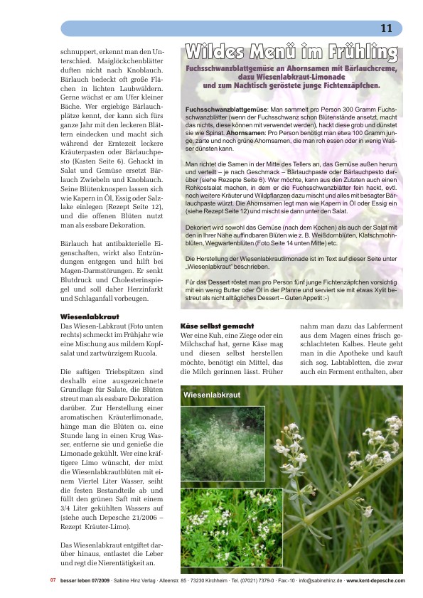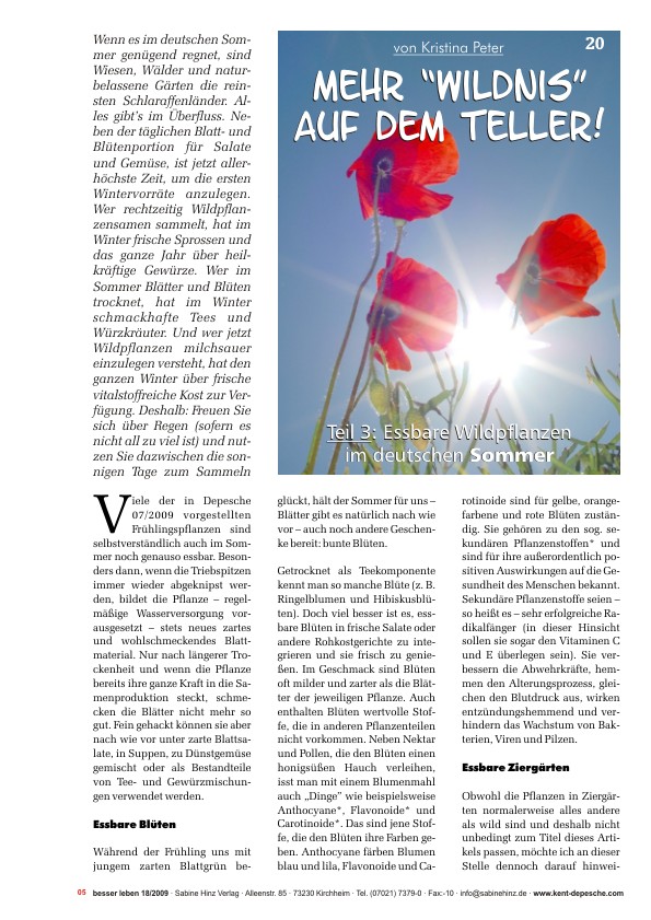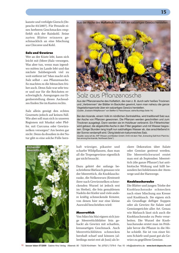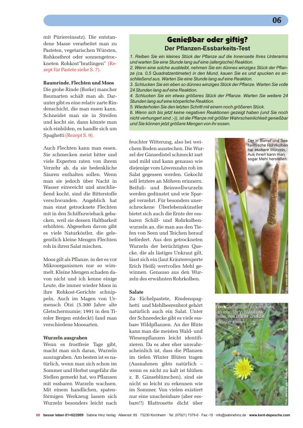 Wussten Sie z.B., dass man „Schwarztee“ auch aus Brombeerblättern und Kapern u.a. „exotische Gewürze” auch aus heimischen Wildpflanzen gewinnen kann? Dass junge Blätter heimischer Bäume eine wohlschmeckende Ergänzung des Speiseplanes bieten? Das und viel Spannendes mehr verraten wir Ihnen in diesem Themenheft.