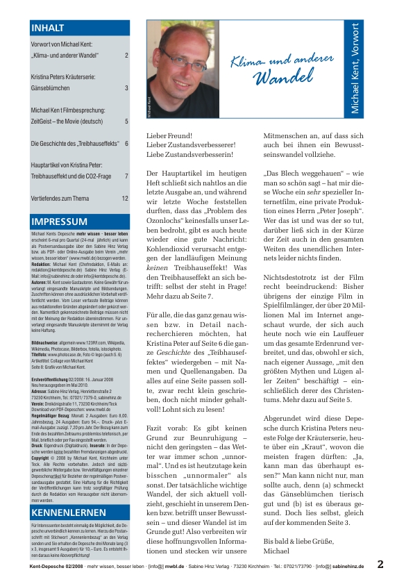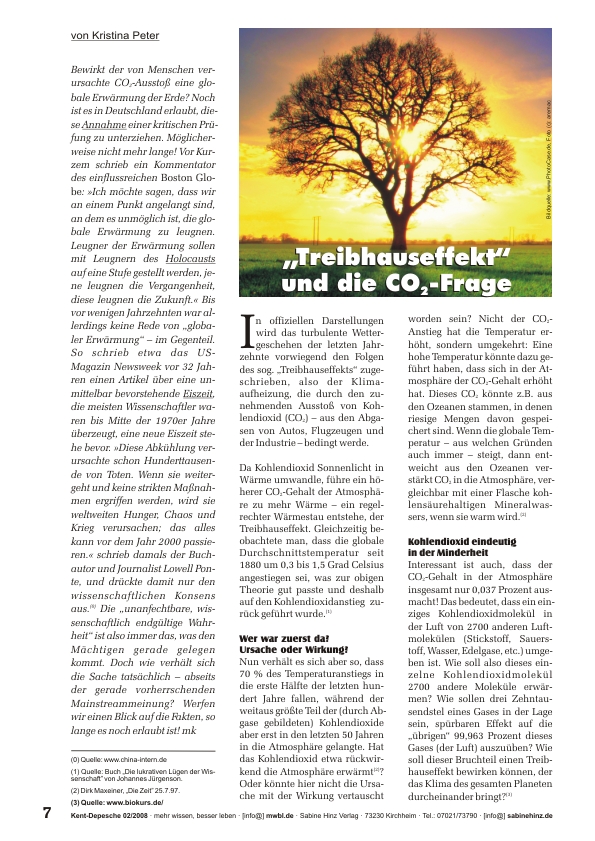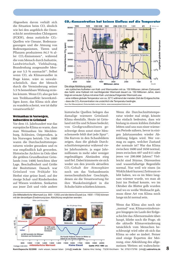 »Bewirkt der von Menschen verursachte CO2-Ausstoß eine globale Erwärmung der Erde? Noch ist es in Deutschland erlaubt, diese Annahme einer kritischen Prüfung zu unterziehen. Möglicherweise nicht mehr lange! Vor Kurzem schrieb ein Kommentator des einflussreichen Boston Globe: »Ich möchte sagen, dass wir an einem Punkt angelangt sind, an dem es unmöglich ist, die globale Erwärmung zu leugnen. Leugner der Erwärmung sollen mit Leugnern des Holocausts auf eine Stufe gestellt werden, jene leugnen die Vergangenheit, diese leugnen die Zukunft.« Bis vor wenigen Jahrzehnten war allerdings keine Rede von „globaler Erwärmung“ – im Gegenteil. So schrieb etwa das US-Magazin Newsweek vor 32 Jahren einen Artikel über eine unmittelbar bevorstehende Eiszeit, die meisten Wissenschaftler waren bis Mitte der 1970er Jahre überzeugt, eine neue Eiszeit stehe bevor. »Diese Abkühlung verursachte schon Hunderttausende von Toten. Wenn sie weitergeht und keine strikten Maßnahmen ergriffen werden, wird sie weltweiten Hunger, Chaos und Krieg verursachen; das alles kann vor dem Jahr 2000 passieren.« schrieb damals der Buchautor und Journalist Lowell Ponte, und drückte damit nur den wissenschaftlichen Konsens aus.(0) Die „unanfechtbare, wissenschaftlich endgültige Wahrheit“ ist also immer das, was den Mächtigen gerade gelegen kommt. Doch wie verhält sich die Sache tatsächlich – abseits der gerade vorherrschenden Mainstreammeinung? Werfen wir einen Blick auf die Fakten, so lange es noch erlaubt ist!« mk