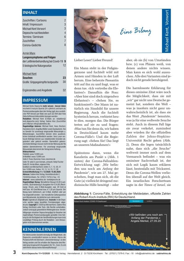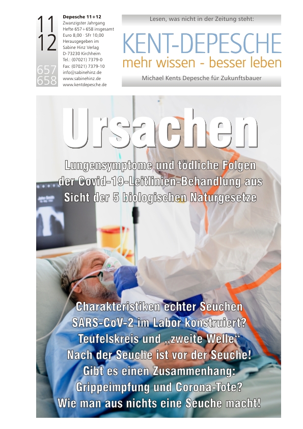 Besonders beunruhigend im Zusammenhang mit Covid-19 sind die schweren bis tödlichen Lungensymptome. Kennt man jedoch die fünf biologischen Naturgesetze (5bN) von Dr. med. R.G. Hamer, verlieren diese Symptome ihren Schrecken. Gleichzeitig erkennt man aber noch Schlimmeres: Dass Corona nämlich eine sich selbst erfüllende Prophezeiung ist, da die Angst um die Gesundheit bzw. vor dem Tod Lungensymptome auslöst. Der Kenner der 5bN, Armin Marx, erklärt die Hintergründe – was vor allem im Zusammenhang mit der beschworenen „zweiten Welle“ von Belang ist. Denn keinesfalls „böse Viren“, sondern Revier-, Angst- und Schreckkonflikte durch Panikmache und Lockdown-Maßnahmen bewirken neue Lungensymptome. Ein Teufelskreis. Doch schlimmer noch: Die künstliche Beatmung sowie die Isolation – zuhause, vor allem aber auf Intensivstationen – begünstigen nach den Erkenntnissen der 5bN die tödlichen Krankheitsverläufe maßgeblich. Die Zusammenhänge zu kennen, kann also nicht nur Leben retten, sondern auch mithelfen, eine „zweite Welle“ im Vorfeld auszubremsen.