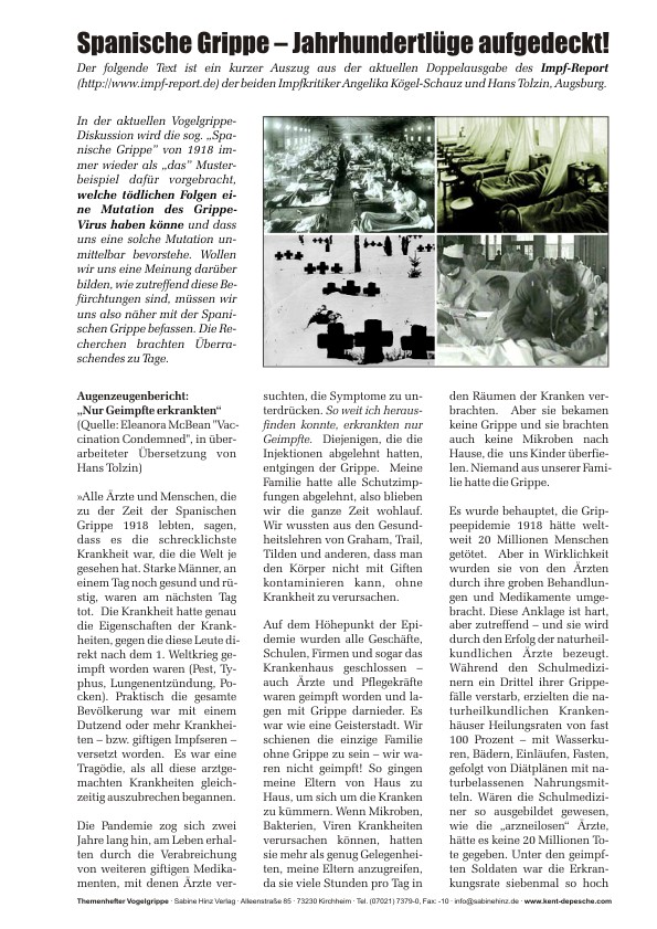 Die verschwiegene Ursache der Spanischen Grippe 1918