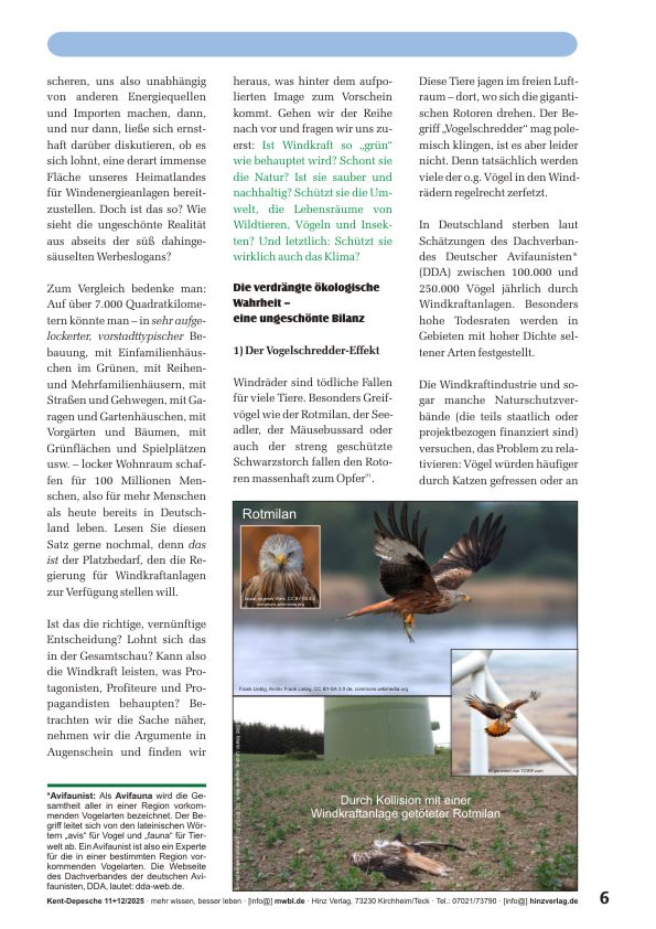 »Seit Jahren explodiert die Zahl der Windkraftanlagen (WKA) in Deutschland regelrecht: Windräder auf Bergrücken, Feldern, ja vermehrt auch in Wäldern und sogar in Schutzgebieten – sowie an unseren Küsten und im Meer. Schon heute ist unsere Heimat das Land mit der höchsten WKA-Dichte weltweit. Windenergie wird in der öffentlichen Debatte als die saubere, grüne Lösung zur Rettung des Klimas gefeiert. Politiker, Lobbygruppen und die großen Medien verkaufen sie den Bürgern als Nonplusultra für eine nachhaltige Zukunft, als „alternativlos“ im Kampf gegen den „Klimawandel“. Doch hinter dem glatt polierten Image verbirgt sich eine Reihe tiefgreifender Probleme, die selten offen angesprochen werden – eine unbequeme Realität, die kaum einmal den Weg in die Massenmedien findet. Dieser Artikel legt die ökologischen, technischen, wirtschaftlichen, gesellschaftlichen und gesundheitlichen Schattenseiten der Windkraft ungeschönt und faktenbasiert offen – jenseits aller Ideologien, aller Werbekampagnen und aller Geschäftsinteressen.«