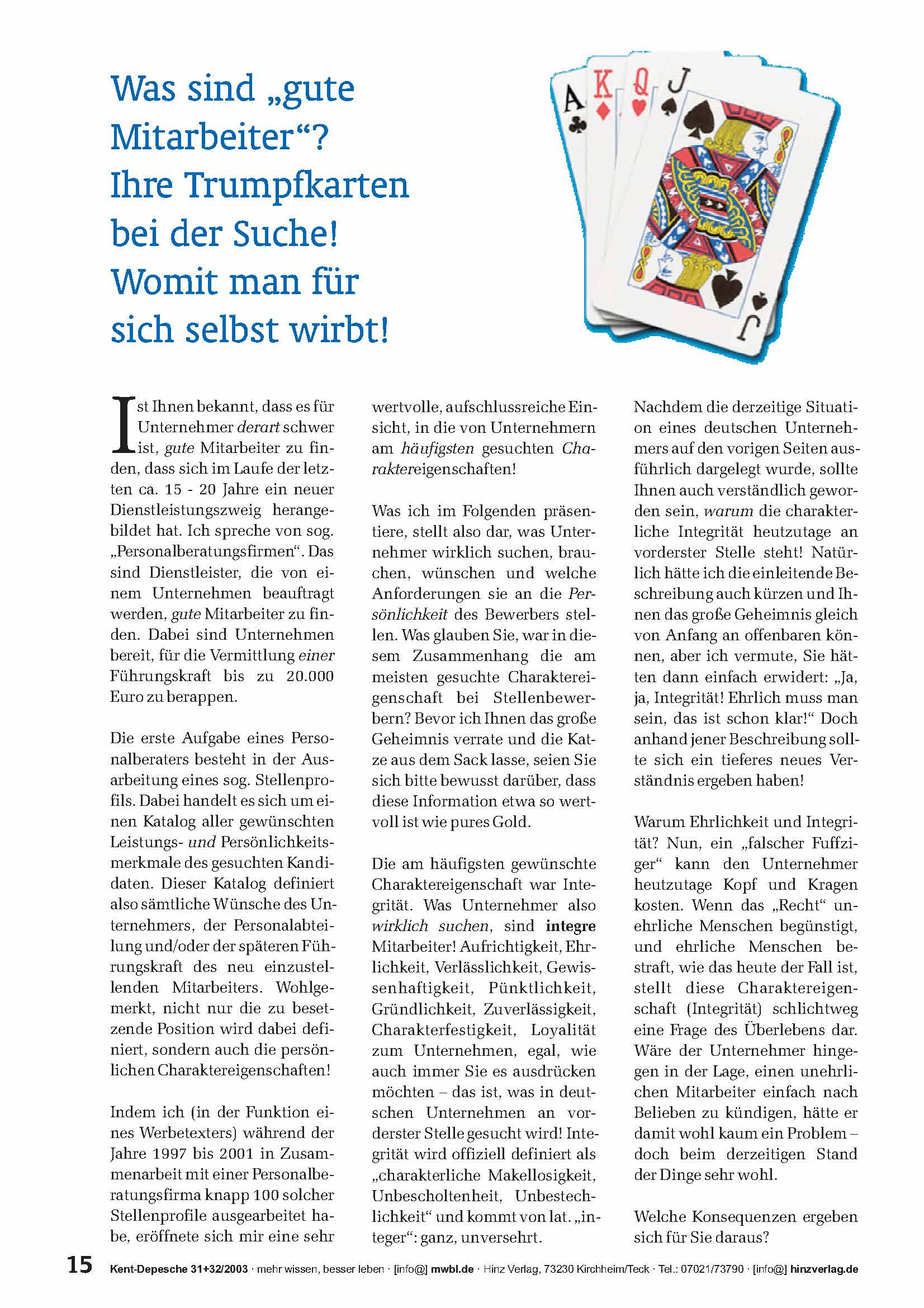 Ihre Trumpfkarten bei der Suche! Womit man für sich selbst wirbt!