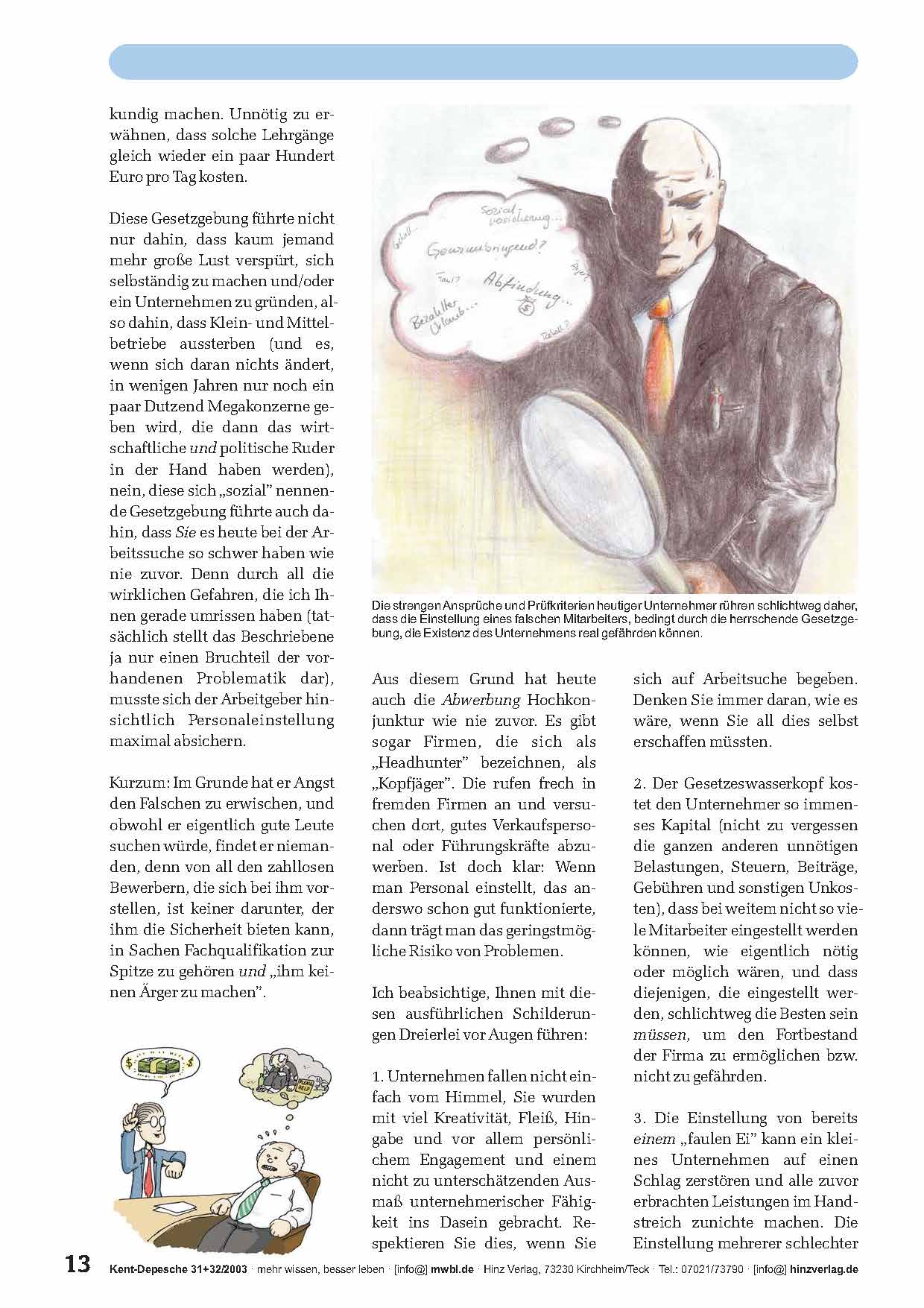 »Im heutigen Teil der Serie geht es u.a. darum, die Sichtweise eines Arbeitgebers zu veranschaulichen. Wie sieht die Welt für den Unternehmer aus? Was sind die Probleme, mit denen er sich konfrontiert sieht? Daher könnte der Text an manchen Stellen so klingen, als würde er Arbeitgeber begünstigen und Arbeitnehmer bzw. Angestellte schlecht wegkommen lassen. Deshalb möchte ich hiermit vorsorglich betonen, dass mir nichts ferner liegt, als Arbeitnehmer zu verunglimpfen. Niemand möge sich also bitte auf den Schlips getreten fühlen, im Gegenteil, diese Serie soll ja gerade Arbeitnehmern zum Nutzen gereichen! Wer aber nicht weiß, wieso Arbeitgeber heute so reagieren (müssen) wie sie reagieren, wer noch nie hinter die „Frontlinie“ geblickt hat, der wird bei seiner Jobsuche nur schwerlich den gewünschten Erfolg erzielen können.«