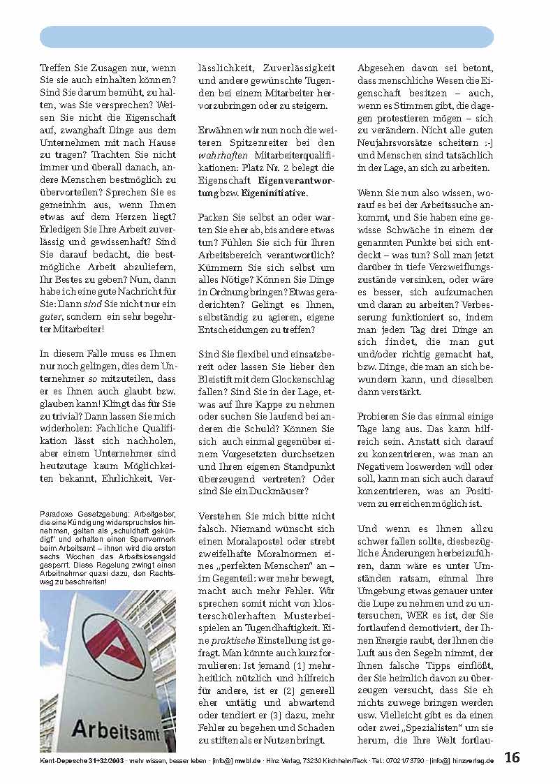 »Wenn man Gutes über sich selbst sagt und die Sache dabei übertrieben oder verallgemeinernd darstellt, lautet der korrekte Fachausdruck dafür „Angeberei“. Sagt man Gutes über sich selbst, das der Wahrheit entspricht, gilt dies in unserer Gesellschaft zumindest als anrüchig. Es macht keinen guten Eindruck und – noch wichtiger – man erreicht damit selten das Gewünschte, sondern eher das Gegenteil. Wie also teilt man dem zukünftigen Arbeitgeber mit, dass man ein integrer, ehrlicher, fleißiger und kompetenter Mitarbeiter, ein Freund des Unternehmens sein wird, ohne dabei in Selbstbeweihräucherung oder gar Angeberei zu verfallen?«